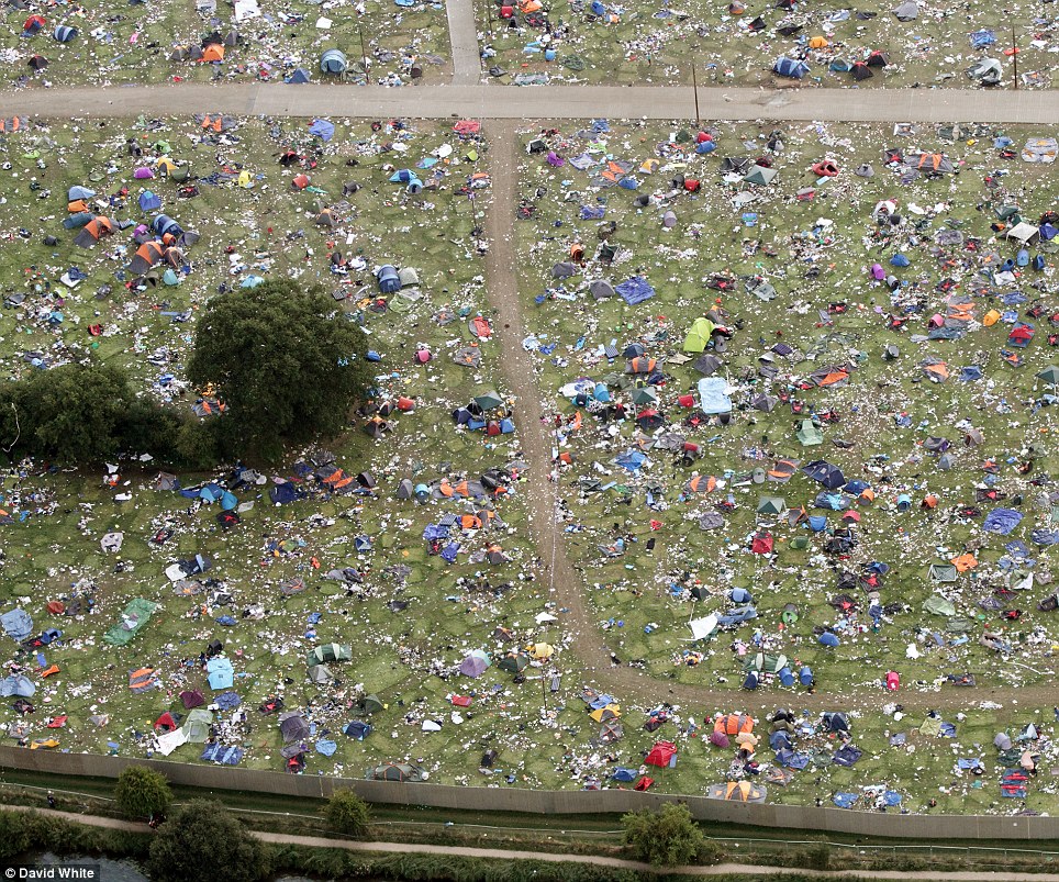 article-2403467-1B7BB282000005DC-785_964x803-1This morning on my Facebook feed I saw a photograph of the aftermath of the Reading festival, the site strewn with literally thousands of sleeping bags and tents discarded by departing festival-goers. It’s a shocking sight. Yes, some of the equipment can be salvaged and re-used by disaster relief charities, but most of it will just end up in landfill.